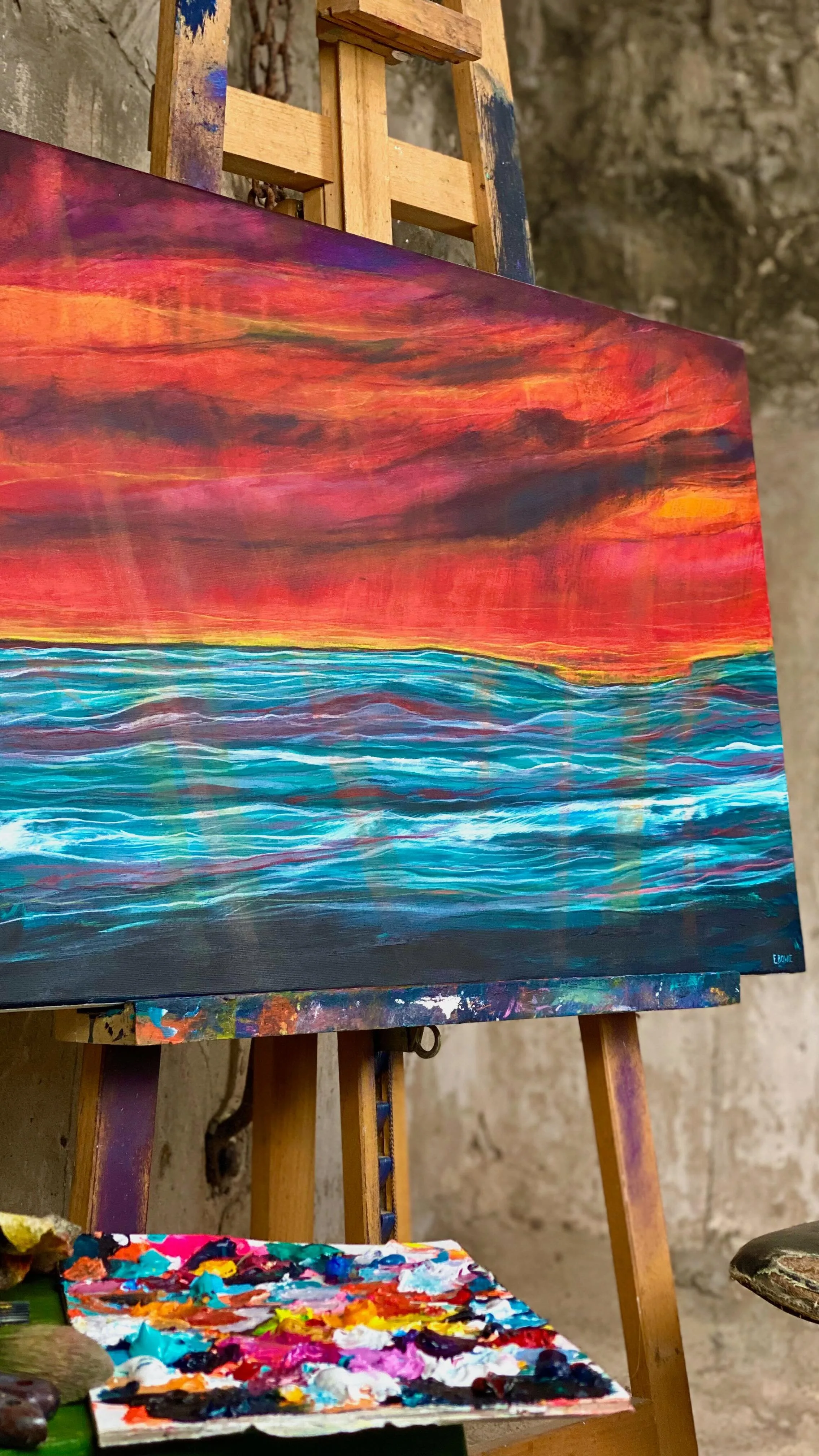 Having grown up on the coast of Pembrokeshire, my art has undoubtedly been inspired by being in, on, and around the ocean. For many years I worked as a surfing and coasteering instructor on the St. Davids peninsula, allowing me to gain a valuable and unique insight into the surrounding natural environment. This has of course had a profound impact upon my painting.
